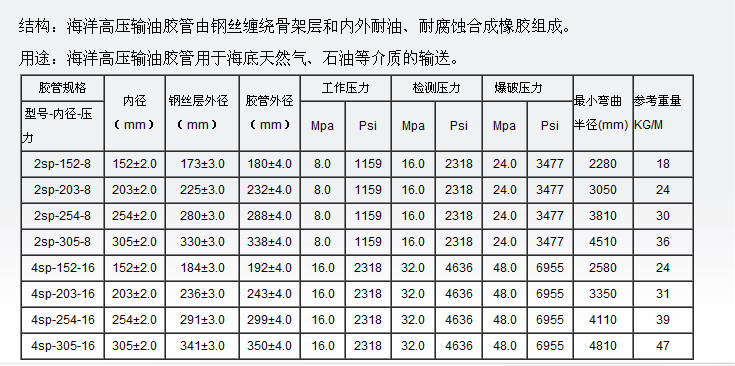 所属类别  海洋高压输油胶管